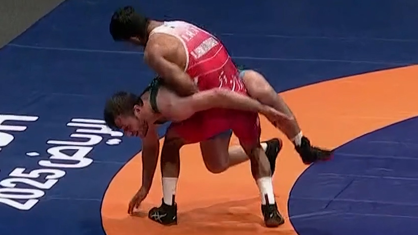 علی احمدی وفا، کشتیگیر فرنگی وزن ۶۰ کیلوگرم ایران، در رقابتهای بازیهای ه...