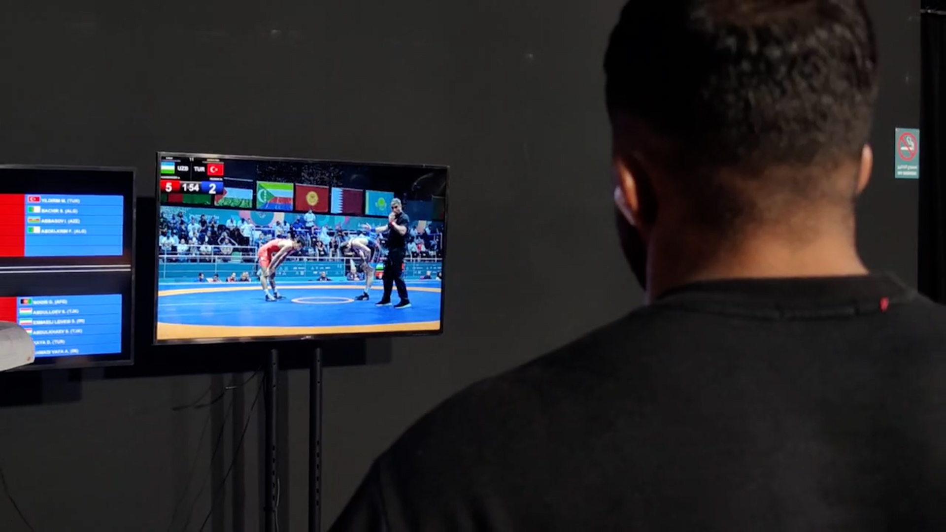 ستاره های کشتی فرنگی ایران در سالن گرم کردن مسابقات ریاض ...