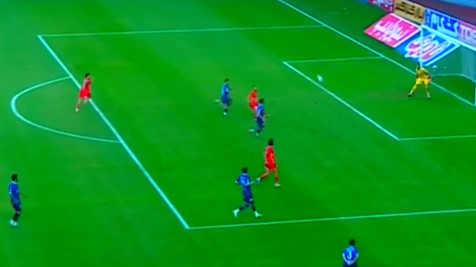 گل مردود فولاد به گل گهر توسط ساسان انصاری که به علت آفساید مورد قبول واقع ...