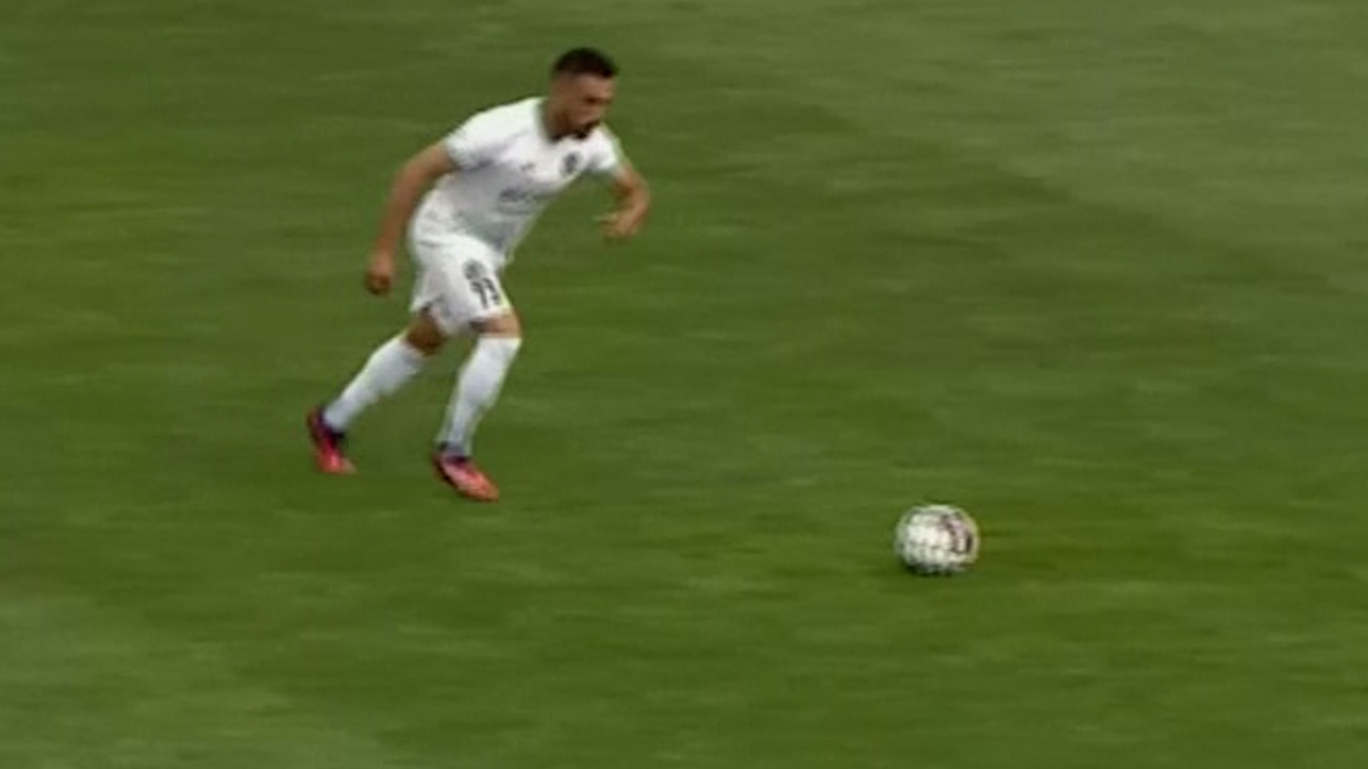 ضربه کاشته ای که علی آزادمنش زد ولی به تیر دروازه چادرملو خورد و راهی اوت ش...