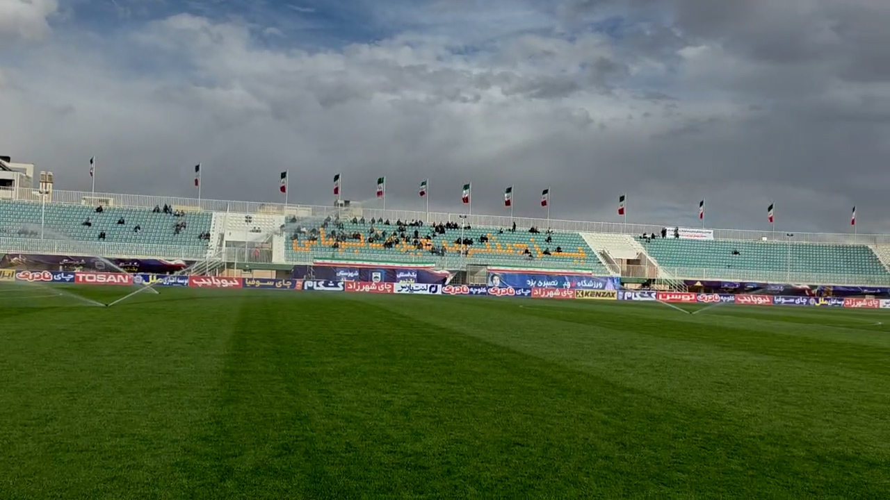 جو ورزشگاه تقریبا خالی از تماشاگر نصیری یزد در فاصله ۱۵ دقیقه تا شروع بازی ...